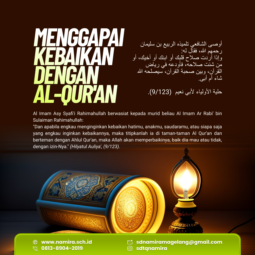 “Dan apabila engkau menginginkan kebaikan hatimu, anakmu, saudaramu, atau siapa saja yang engkau inginkan kebaikannya, maka titipkanlah ia di taman-taman Al Qur’an dan berteman dengan Ahlul Qur’an, maka Allah akan memperbaikinya, baik dia mau atau tidak, dengan izin-Nya.” (Hilyatul Auliya’, (9/123)).